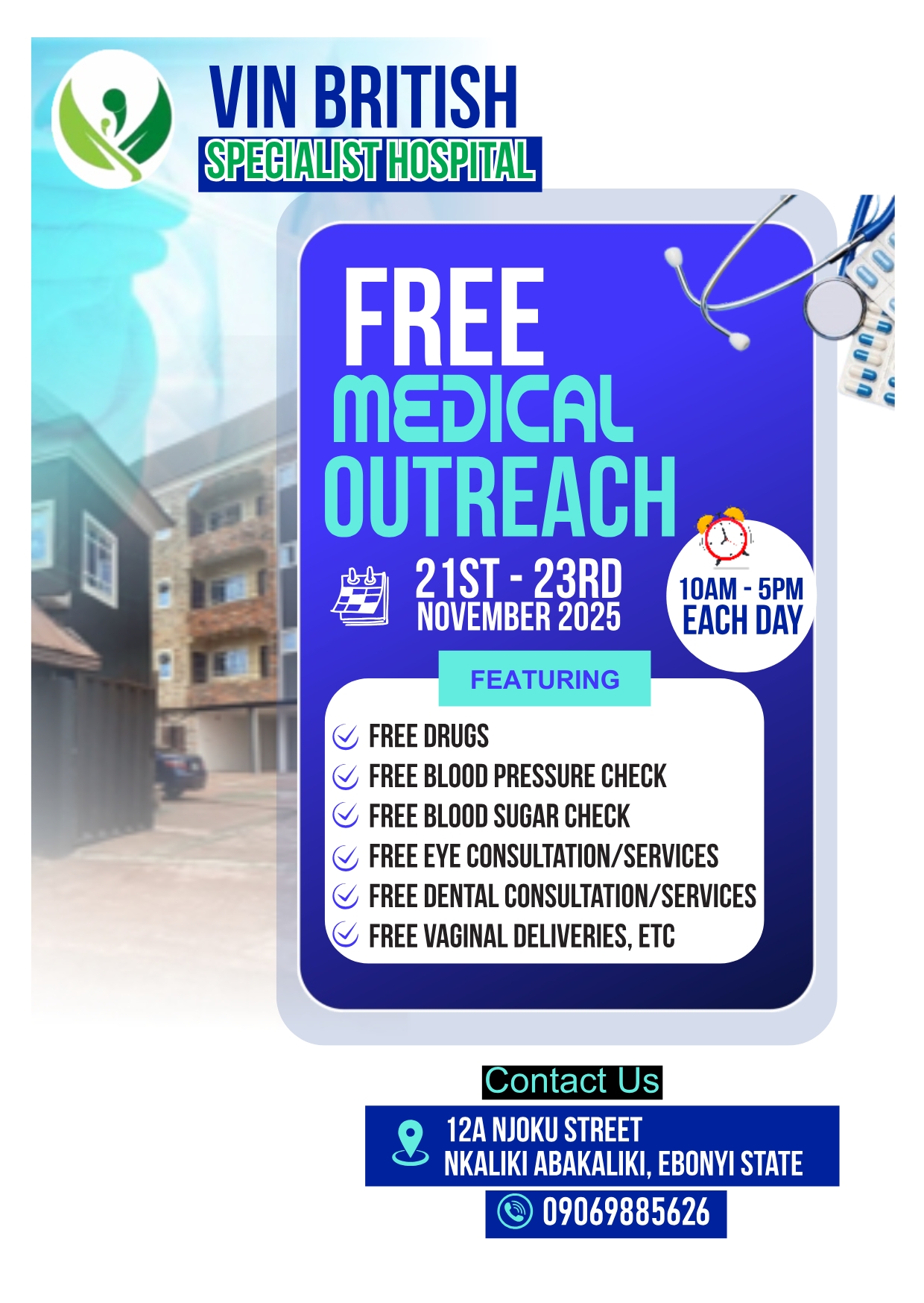 Abakaliki"The outpatient services at VIN British Specialist Hospital are fast and efficient. I was seen by a doctor within minutes, and my tests were carried out with minimal delay. The staff are respectful, and the atmosphere is calm and welcoming. It's definitely one of the best healthcare experiences I've had in Abakaliki."